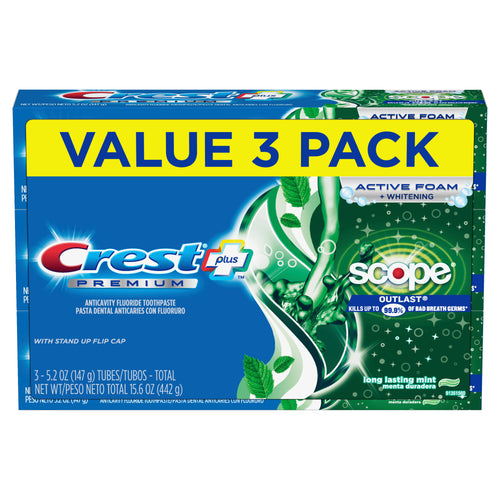 Crest Premium Plus Scope Outlast Toothpaste, Mint, 5.2 Oz, 3 Pack