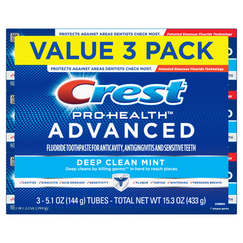 Crest Pro Health Advanced Deep Clean Toothpaste, Mint, 5.1 Oz. 3 Pack